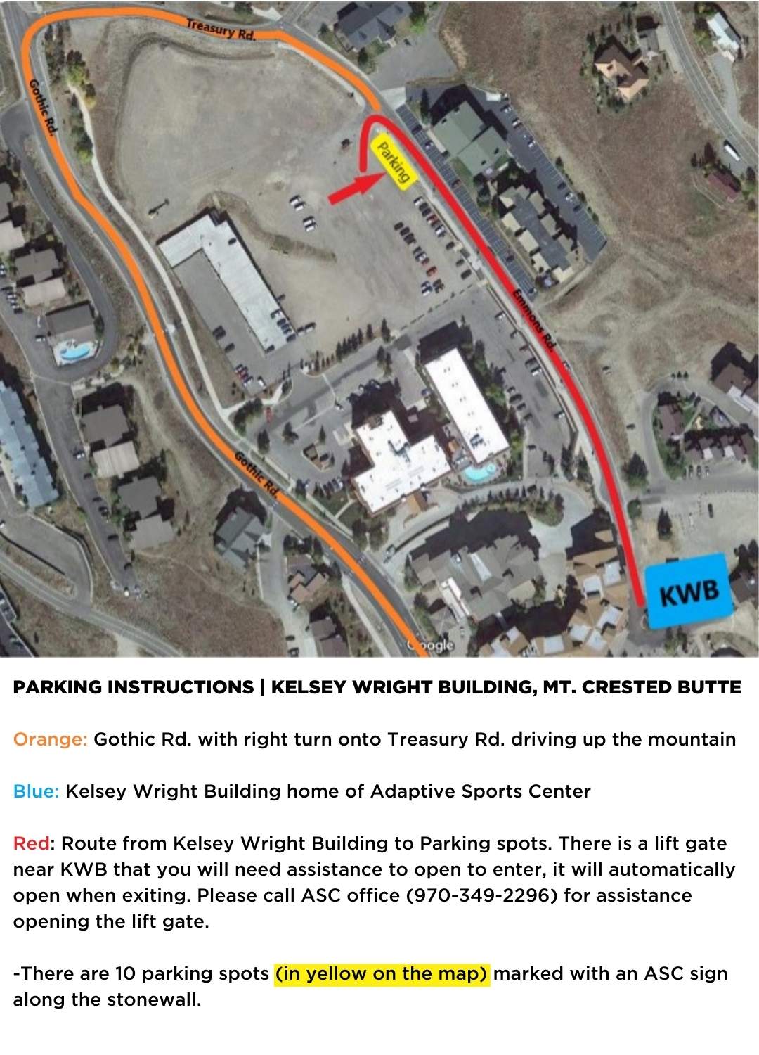 Haga clic aquí para un español. The Adaptive Sports Center is located in Colorado. The closest city is Gunnison. Our headquarters in the Kelsey Wright Building are located at the base area of Crested Butte Mountain Resort in Mt. Crested Butte, Colorado. We have another location in the town of Crested Butte which is 3 miles away. Once here, it is very easy to get around using our free, accessible Mountain Express Shuttle. The following are links to Google maps of: Mt. Crested Butte and the Town of Crested Butte, and Gunnison, Colorado. Driving Driving to Crested Butte is the scenic way to get here. Once you are here, you can park your vehicle and use the town's free shuttle to get around town. Or stay near the Adaptive Sports Center in Mt. Crested Butte. For Colorado Road Reports call (303) 639-1111 or visit the COtrip Traveler Information site here. Following are driving times from some common destinations: Denver: 4-hours Colorado Springs: 3.5-hours Grand Junction: 3-hours Montrose: 2-hours* Gunnison: 35 minutes PARKING INSTRUCTIONS Flying Airports in both Gunnison and Montrose offer flight service from several major U.S. cities and are the closest to Crested Butte. You can also fly into Grand Junction, Denver, or Colorado Springs and rent a vehicle. If you want assistance with making flight reservations, Crested Butte Vacations is a one-stop shop and can also help with lodging. Ask about special lodging rates for participants of the Adaptive Sports Center. Gunnison - Crested Butte Regional Airport (GUC) The Gunnison-Crested Butte Regional Airport is the closest airport to Crested Butte. Flights arrive in Gunnison, located just 35 minutes from the town of Crested Butte. Montrose Regional Airport (MTJ) The Montrose Regional Airport is a beautiful 2-hour drive to Crested Butte. *Please note there are ongoing road improvements on US Hwy 50 between Montrose and Gunnison. Be aware that road closures may result in delays. For more information, visit their road closures website and plan accordingly. Airport Transfers to Crested Butte Alpine Express offers shared transfers to Crested Butte from both Gunnison and Montrose airports. They also provide private ride options. 1-800-822-4844
